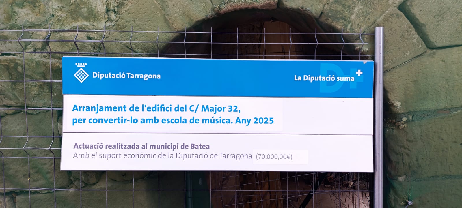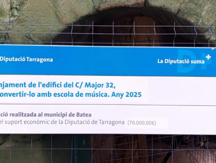 L'Ajuntament de Batea ja ha començat les obres a l'edifici C/ Major, 32, de Batea per convertir-lo en la futura escola de música. Aquesta actuació s'està realitzant gràcies a la subvenció nominativa de la Diputació de Tarragona, unitat de cultura, que ha dotat de 70.000€ el projecte. En el poble ja hi havia una necessitat d'ampliar l'aula de música i convertirà en escola de música. L'edifici que s'ha adquirit i s'està reformant era essencial per al canvi. A més l'edifici es trobava en situació de ruïna tècnica, ja que presentava mitja coberta enfonsada i suposava un perill imminent de ruptura de diverses bigues i biguetes de fusta que podien haver produït un enfonsament sobtat. L’edifici es troba en el nucli antic de la població, essent una zona amb un elevat valor patrimonial, lloc molt visitat per turistes i veïns de poble que van a l'Església.